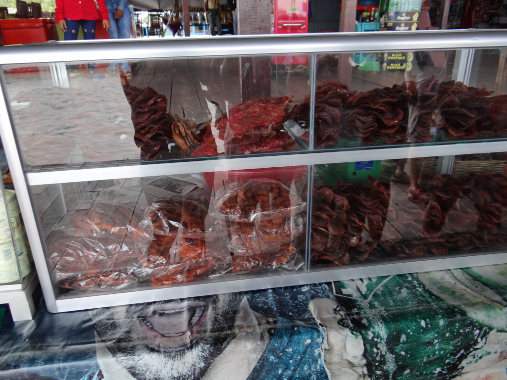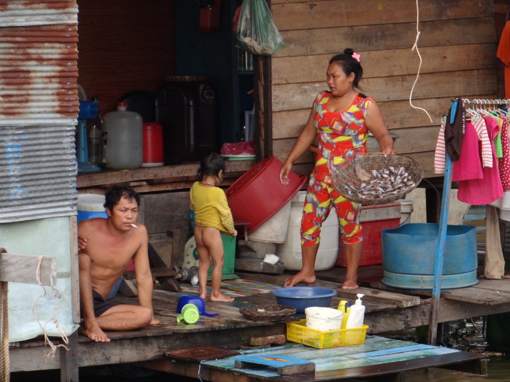 Podczas rejsu byłam targana swoim europocentrycznym sposobem myślenia, instynktem macierzyńskim (mam małe dziecko, które wtedy zostało w Polsce) oraz spojrzeniem kulturoznawcy. I nadal tkwię gdzieś pomiędzy, bo z jednej strony dla tych ludzi życie w takich domach na takim poziomie rozwoju jest czymś zupełnie normalnym, a z drugiej- domostwa były otwarte, często bez drzwi i okien- płynąc, zaglądaliśmy tym ludziom do pokoi, łóżek, kuchni, bez możliwości zasłonięcia, odgrodzenia, powiedzenia „nie”. Wisienką na torcie był widok kilkulatki płynącej w beczce oraz wizyta na lokalnym targu z zamkniętymi w klatkach krokodylami, gdzie tuż obok handlowano ich skórami. Do dzisiaj ciężko mi wrócić do zdjęć z tego miejsca- publikuję je tutaj, żebyście mogli samemu ocenić.