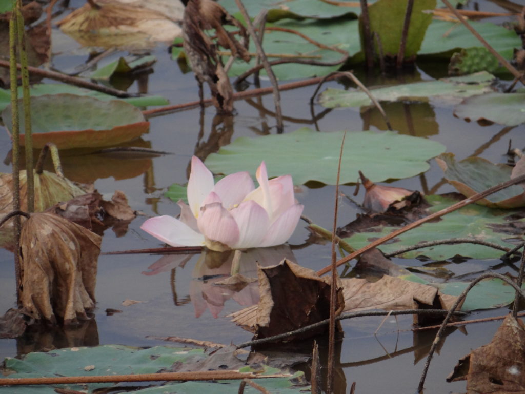 W drodze powrotnej z rejsu zatrzymaliśmy się na plantacji lotosu. Widok, jak widać na zdjęciach poniżej- bardzo przygnębiający. Przekwitłe, zwiędnięte i kompletnie nieatrakcyjne miejsce sąsiadowało z plantacją na której lotosy kwitnęły w najlepsze tworząc bajkowe, różowe jezioro. Niestety, plantacja w rozkwicie była dodatkowo płatna- wstęp kosztował (UWAGA!) 1USD (słownie- jednego amerykańskiego dolara) i tam nie mogliśmy się zatrzymać, tylko przy bagnisku, które było darmowe. Trochę wstyd.