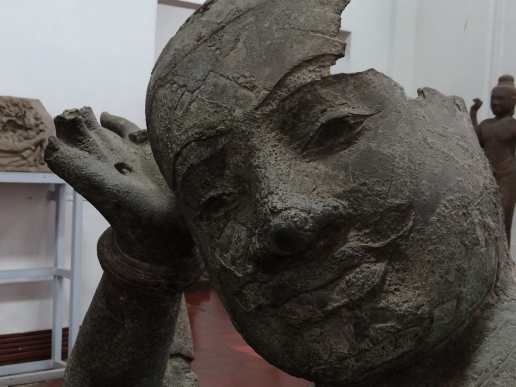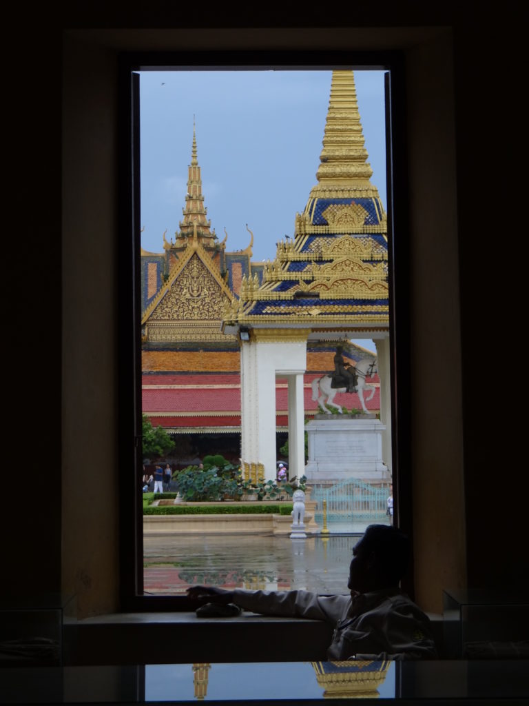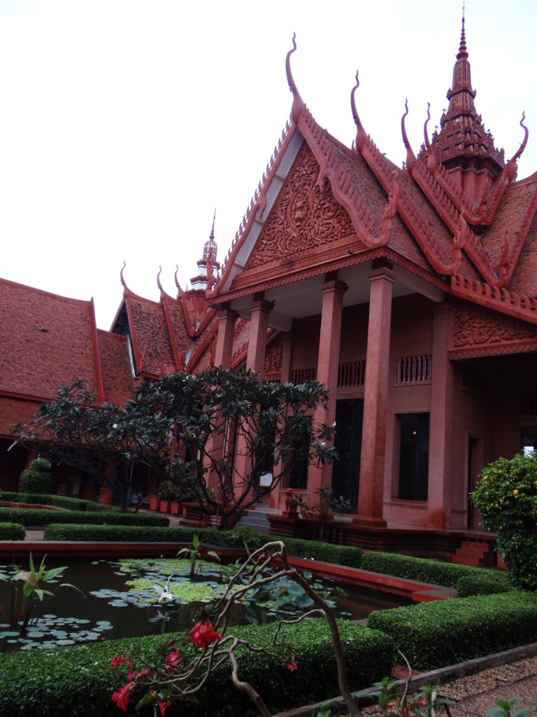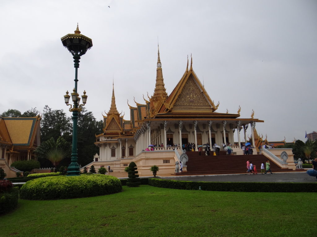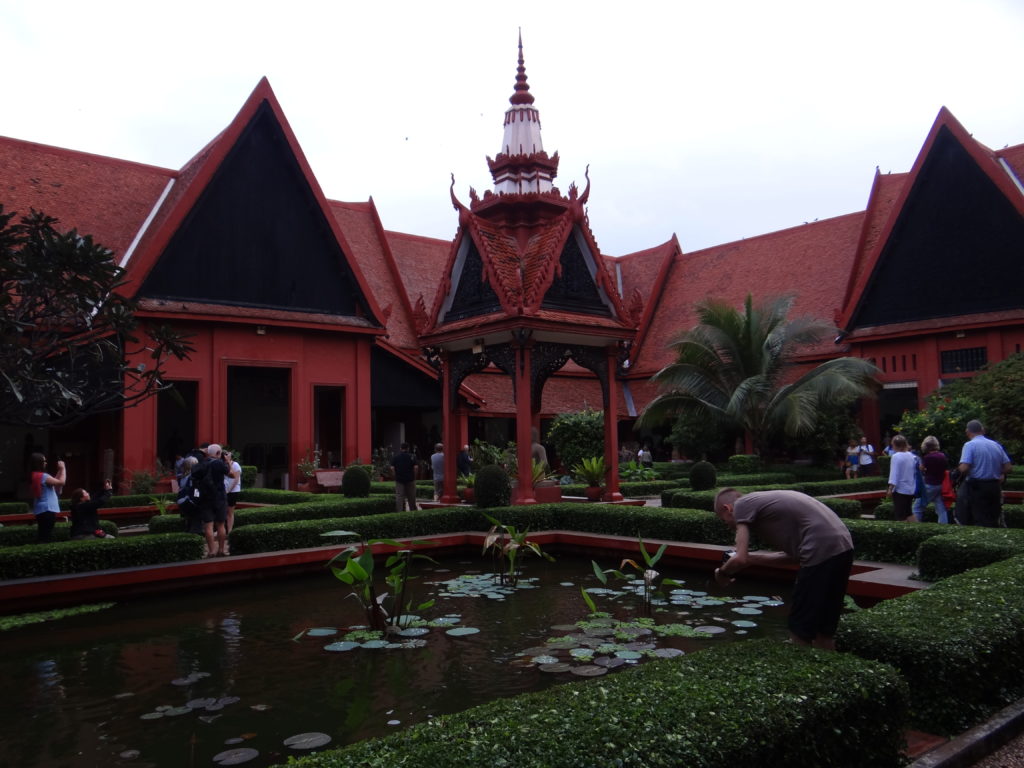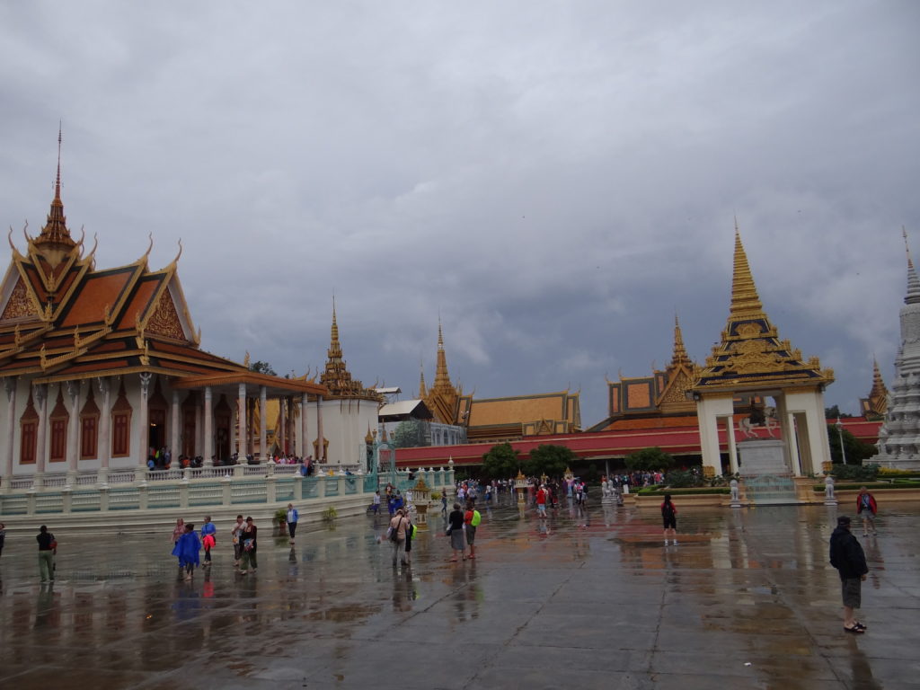 Kolejny dzień transferowy. Mi był bardzo potrzebny na odchorowanie moralniaka po rejsie. W drodze do Phnom Penh zatrzymujemy się na lokalnym bazarze zwanym „Targiem Pająka”. Na miejscu okazuje się, że nazwa tego miejsca nie jest przypadkowa- na turystów czeka zgraja dzieci trzymająca na rękach olbrzymie pająki z którymi można sobie zrobić zdjęcie. W godzinach popołudniowych dojeżdżamy do stolicy kraju- Phnom Penh, zwłaszcza skąpane w deszczu robi bardzo ponure wrażenie. Nastrój tylko pogłębia się w kompleksie Pałacu Królewskiego, który zdaje się, że bez środków na remont niebawem się rozsypie. W zestawieniu z widzianymi kilka dni wcześniej, świetnie utrzymanymi, wyremontowanymi i chronionymi zabytkami w Bangkoku, zaczyna mnie przepełniać frustracja. Wyniszczające Kambodżę wojny sprawiły, że naród ten ma niewiele zabytków i miejsc z którymi historycznie może się identyfikować– widok tego, co pozostało i w jakim jest stanie- łamie serce. Muzeum Narodowe to piękny, choć skromnie wyposażony budynek. Tutaj dostajemy przysłowiowego „gonga”- muzeum z taką ilością zabytków w Grecji byłoby uważane za peryferyjny składzik dla kilkudziesięciu eksponatów, tutaj- jest dumą narodową. To miejsce jest doskonałym źródłem refleksji czym jest wojna i dokąd prowadzi.